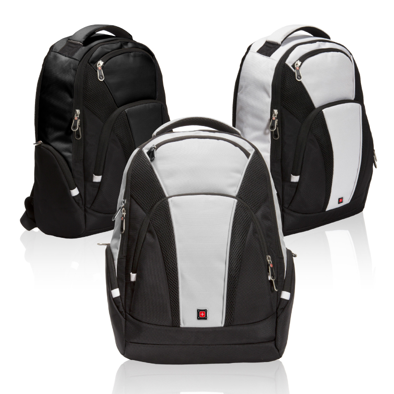 בלפורט - תיק גב למחשב העיצוב מוקפד מבית SWISS. עשוי בד יוקרתי 1680D. עם יציאת USB משולבת הטענה. 3 תאים גדולים ו 2 תאי צד משולבים עם רשת. תא אחורי. ידית נשיאה מרופדת. עם רצועה מותאמת למזוודה. מערכת גב ורצועות נשיאה ארגונומיות לנוחות מקסימלית.