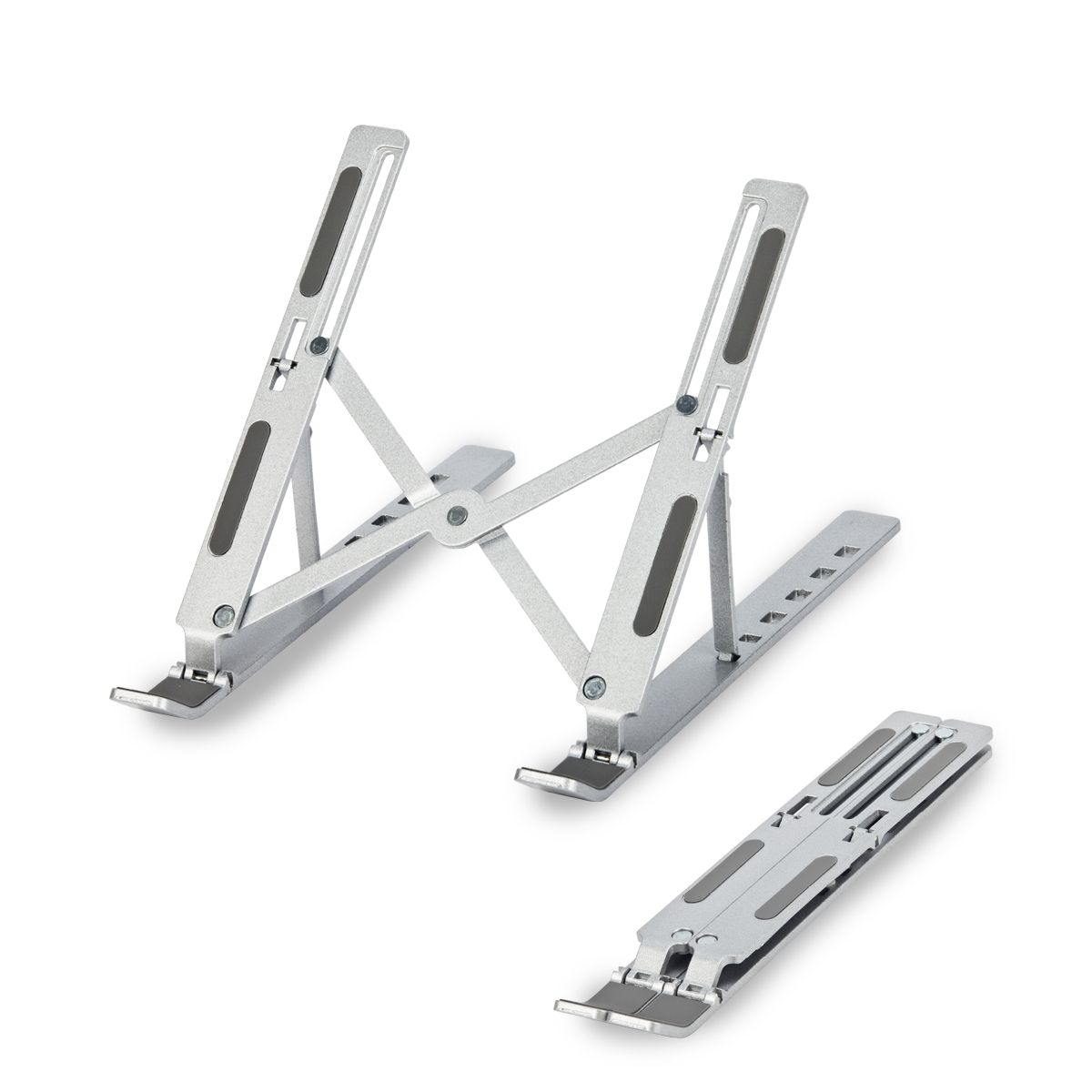 מעמד שולחני מתקפל עשוי מתכת ופלסטיק למחשב נייד/טאבלט.