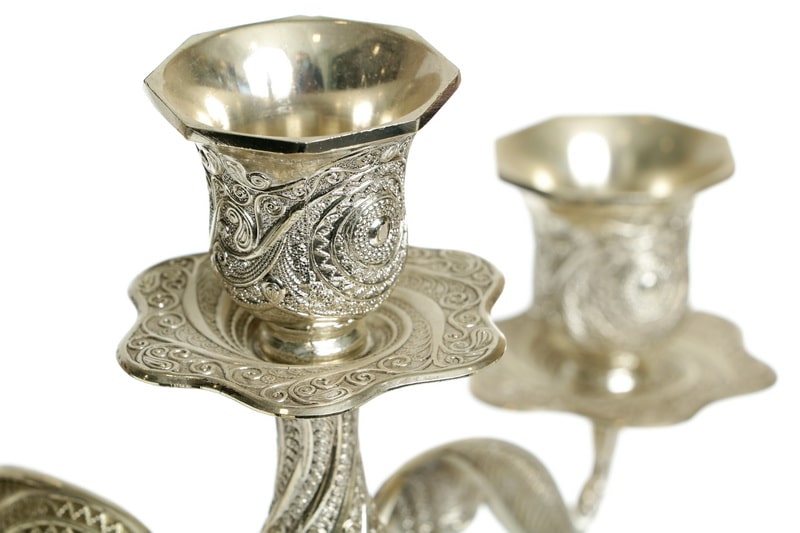 פמוטי זכוכית שיש "הדלקת נרות" 18.5x16.5 ס"מ.