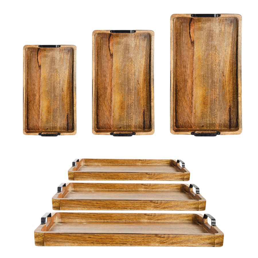 סט 3 מגשי עץ - 43x25 ס'מ, 28x23 ס'מ, 33x20 ס'מ.