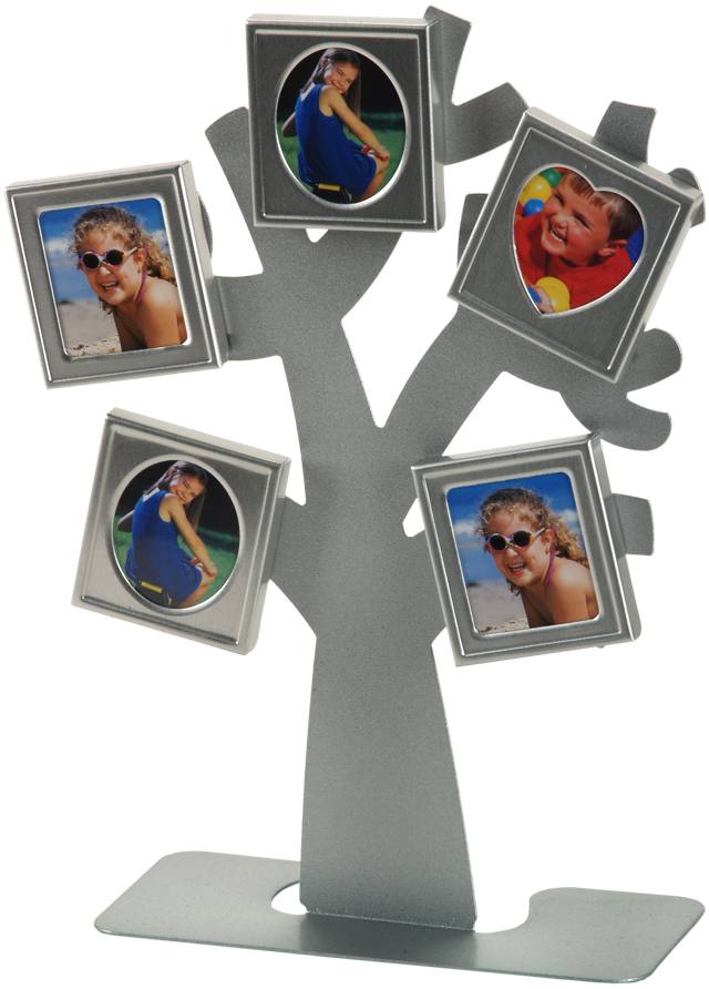 עץ משפחה מתכתי עם חמש מסגרות מגנטיות. מידות בסיס 12x5 ס'מ. גובה 21 ס'מ.