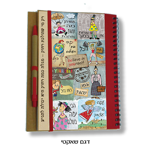 פנקס ממוחזר ועט דגם שאקטי. פנקס ממוחזר 10×15 ס”מ, עם עט דגם שאקטי A6 עם כריכה קשה, סגר גומי, 60 דף שורה. נייר ממוחזר 80 גרם, עט מצורף.