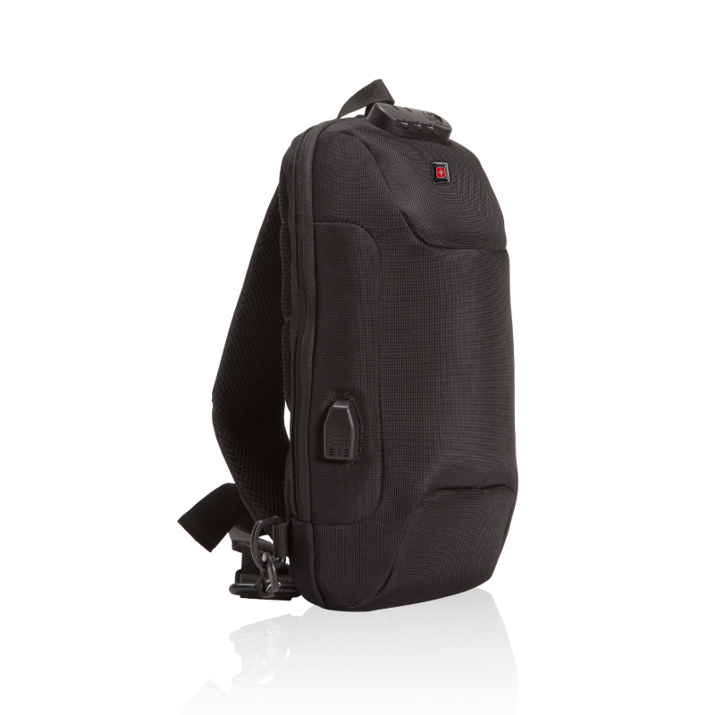 גלארוס - תיק צד בעיצוב אורבני 32x10x22 ס'מ מבית העיצוב SWISS. עשוי בד איכותי במיוחד 1680D. עם קוד נעילה לרוכסן ויציאת USB משולבת הטענה. תא מרכזי עם פתיחה רחבה ו-4 תאים נוספים.